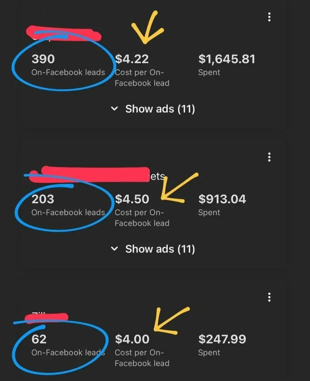 ⬇️ Check Cost/Lead - Spent over $500K USD on ADS!!